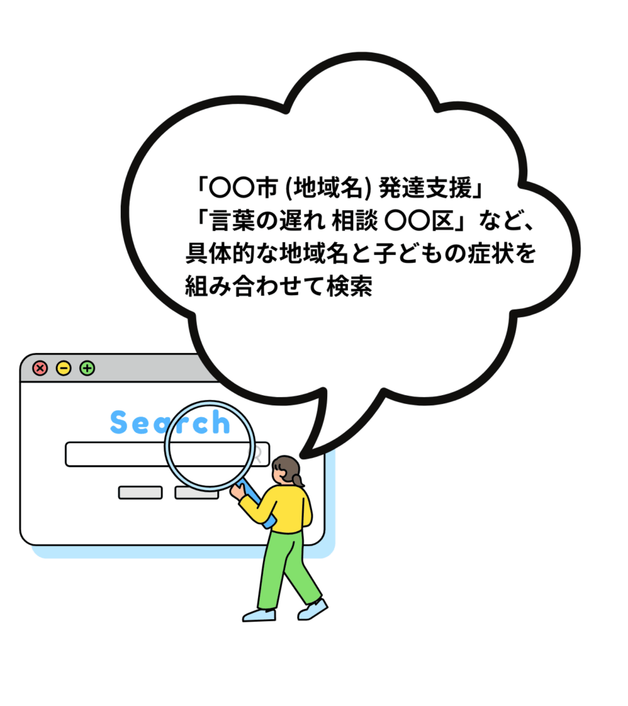 保護者は「発達障害」という大きな言葉だけでなく、「〇〇市 (地域名) 発達支援」「言葉の遅れ 相談 〇〇区」など、具体的な地域名と子どもの症状を組み合わせて検索しています。