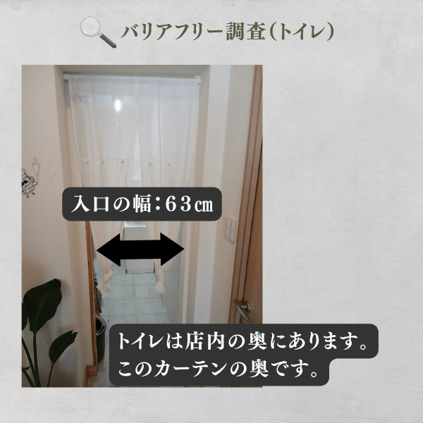 トイレの方は車椅子横づけできるスペースは無いので、車いすでお越しの方はあらかじめ排泄されてからの来店の方がよさそうです。