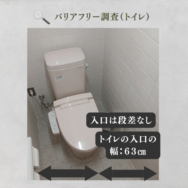 車椅子の横づけは難しく、短い距離でも歩ける方がトイレ利用の対象になりそうでうす。車いすで来店される際は、先に排泄された方が良いかもしれません。