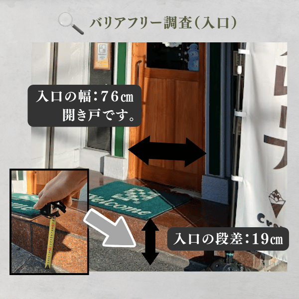 入口には段差ありますが、スロープ設置予定。お店の人も助けてくれます!
