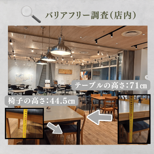 店内も広く椅子も可動式。車いすで食事を楽しんだりベビーカーの横づけもまったく問題なさそうです。