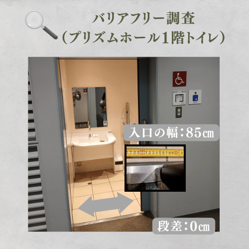 ※オストメイト対応トイレもプリズムホール内にあるそうです。詳しくはプリズムホールのホームページでご確認ください。