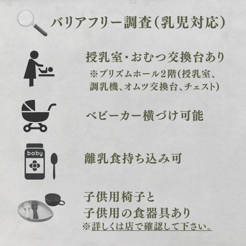 「カフェ」「子連れOK」「車いすOK」「ランチ」「多目的トイレ」「駐車場あり」