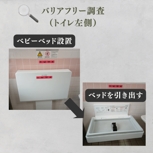 トイレ入って左側の奥に洗面台。手前がベビーベッドになります。