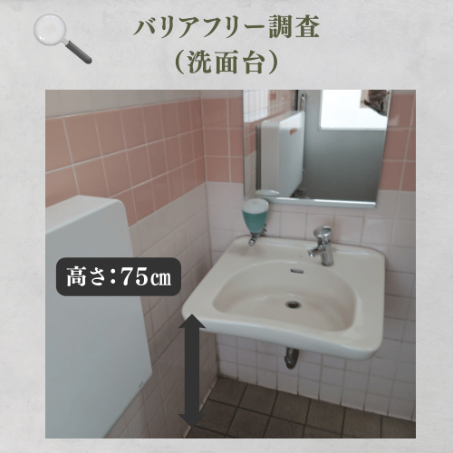 洗面台周囲には手すりは無いです。車いすの方は座ったままで手洗いする事になりそうです。