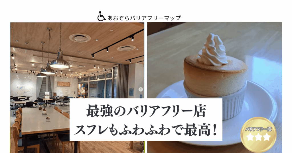 八尾市プリズムホール内の「Hanayaka Cafe(はなやかカフェ)」をバリアフリー調査!段差ゼロの広い入口、多機能トイレ完備で車椅子やベビーカーの方も安心。さらに事前予約で「食事のカット」にも対応してくれる神対応が魅力です。名物の絶品チーズスフレ情報とともに、詳細な計測数値を専門家の視点で公開中! -